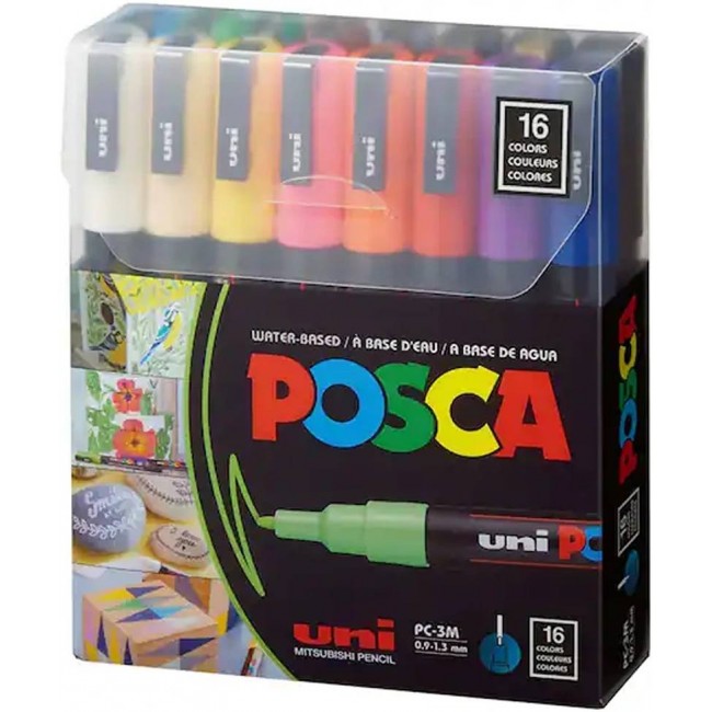 Цей набір включає 16 акрилових маркерів базових кольорів із серії Uni Posca PC-3M.